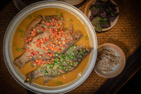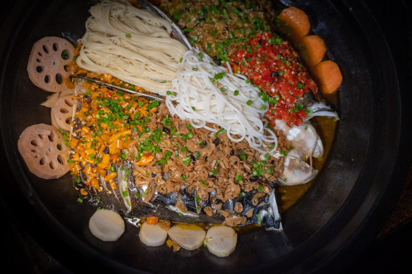 Steamed fish head with diced red peppers is another must-try. The fish head is cut from a 7.5-kilogram fish and it is steamed with four kinds of minced pepper and a handmade chili sauce.