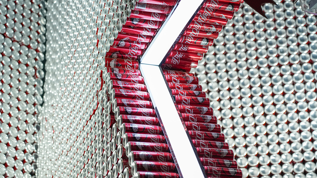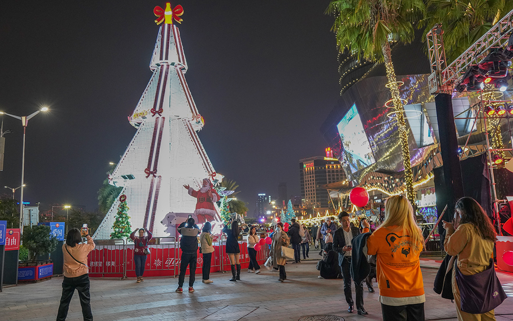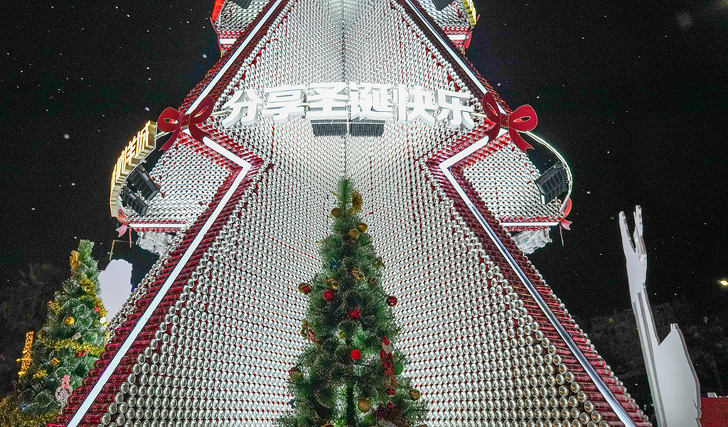 A Christmas tree made of coke cans draws many passers-by in Nanning city, Guangxi Zhuang autonomous region. [Photos/IC]