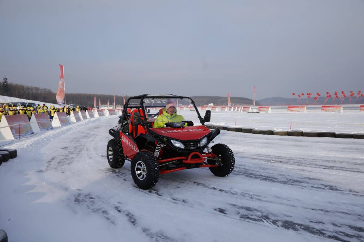 A tourist drives a small motor vehicle during ice and snow activities at the opening ceremony of the 7th National Public Ice and Snow Season at the Jingyuetan National Forest Park in Changchun, capital of Northeast China's Jilin province, on Dec 29, 2020. [Photo by Meng Zhaodong/for chinadaily.com.cn]