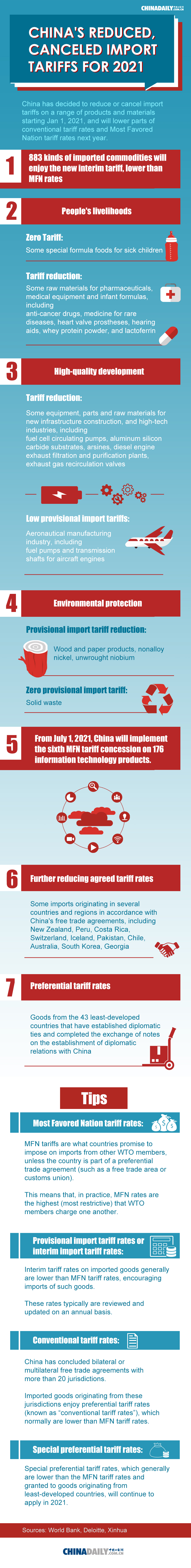 China's reduced, canceled import tariffs for 2021