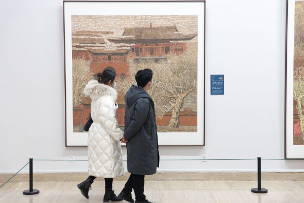 An exhibition now on at the National Art Museum of China until Jan 3 shows nearly 100 artworks tracing Zhoukou's past and unfolding a panoramic view of its present. [Photo by Jiang Dong/China Daily]