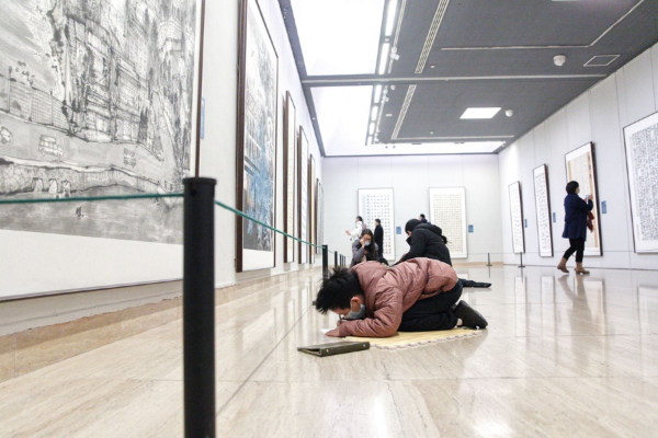 An exhibition now on at the National Art Museum of China until Jan 3 shows nearly 100 artworks tracing Zhoukou's past and unfolding a panoramic view of its present. [Photo by Jiang Dong/China Daily]