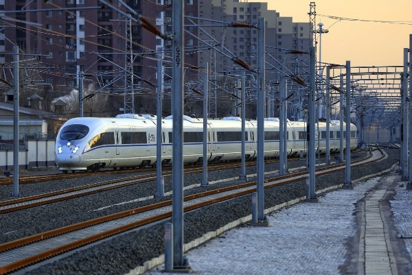 A high-speed train departs from Yinchuan station in Ningxia Hui autonomous region during trial on Dec 25, 2020. [Photo provided to chinadaily.com.cn]