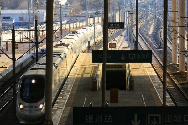 A high-speed train enters Yinchuan station in Ningxia Hui autonomous region during trial on Dec 25, 2020. [Photo by Ding Bannong/for chinadaily.com.cn]