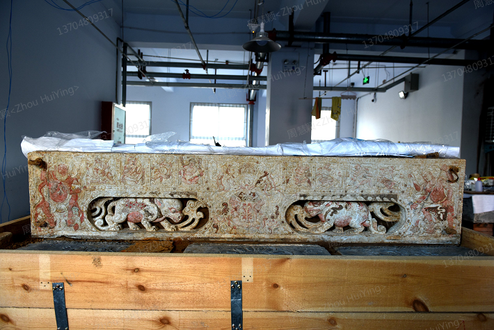 The base of the white marble coffin bed was unearthed from a Sui Dynasty (581-618) tomb in Anyang, Central China's Henan province. [Photo provided to chinadaily.com.cn]