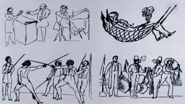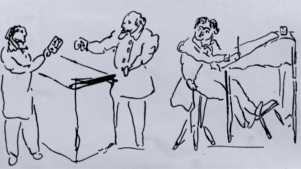 Friedrich Engel's sketches about the high society in Germany. [Photo provided to China Daily]