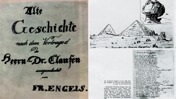 A still image displays a manuscript penned by Friedrich Engel when he was a middle-school teenager. [Photo provided to China Daily]