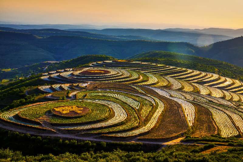 Colorful, circular terraces are seen in Guyuan, Northwest China's Ningxia Hui autonomous region. [Photo provided to chinadaily.com.cn]