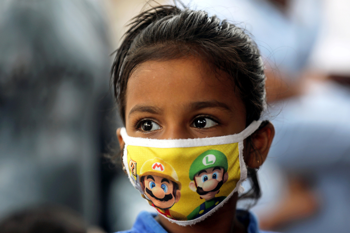 A girl wears a protective mask in Mumbai, India, on Sept 20, 2020. [Photo/Agencies]