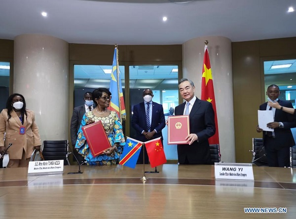 Visiting Chinese State Councilor and Foreign Minister Wang Yi and his DRC counterpart Marie Tumba Nzeza signed the MoU between the two governments after their talks earlier in Kinshasa.