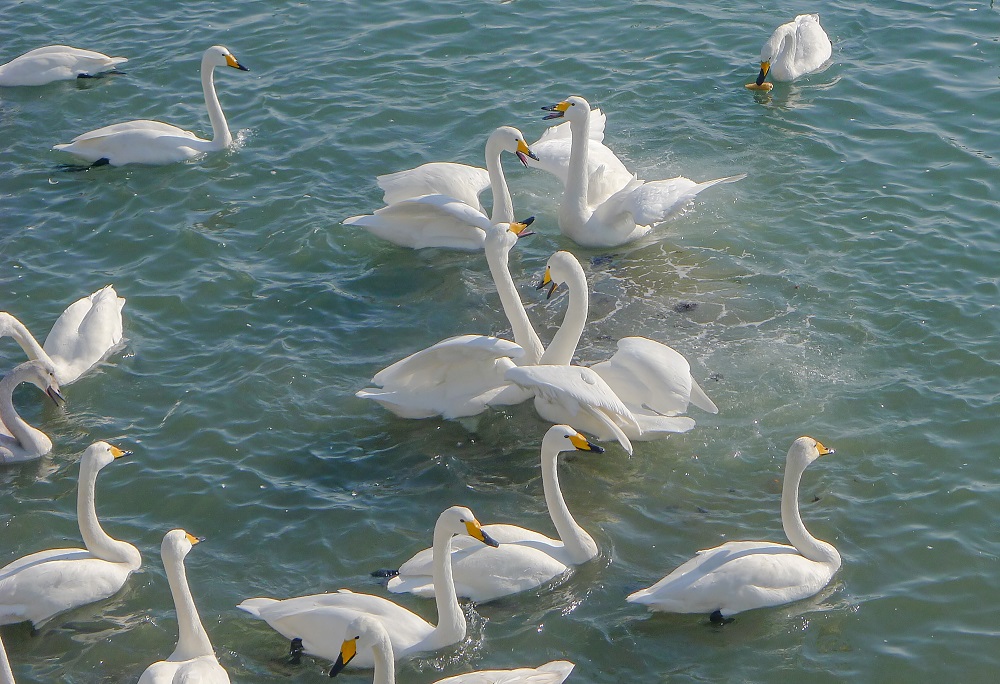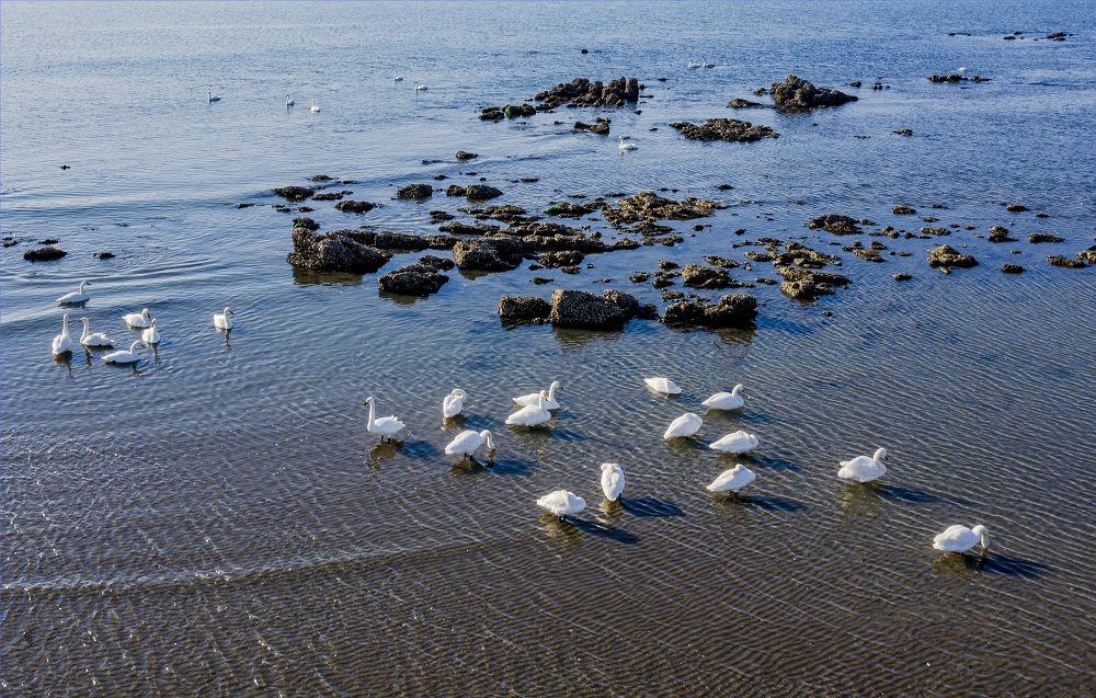 Flocks of swan are happily enjoying their "leisure time" in Yandunjiao village of Rongcheng, Shandong province, adding more winter fun to this natural reserve.