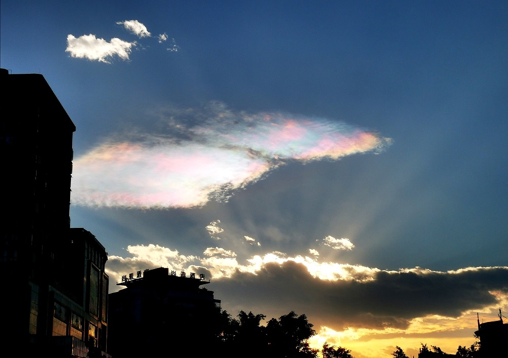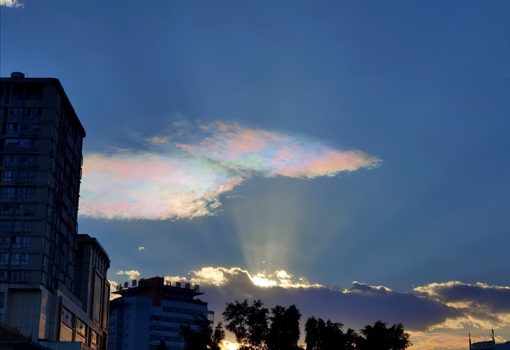 Reflecting colorful lights, rainbow clouds crossed the sky over Xichang, Sichuan province the other day, adding even more fairy tale flavor to the city.