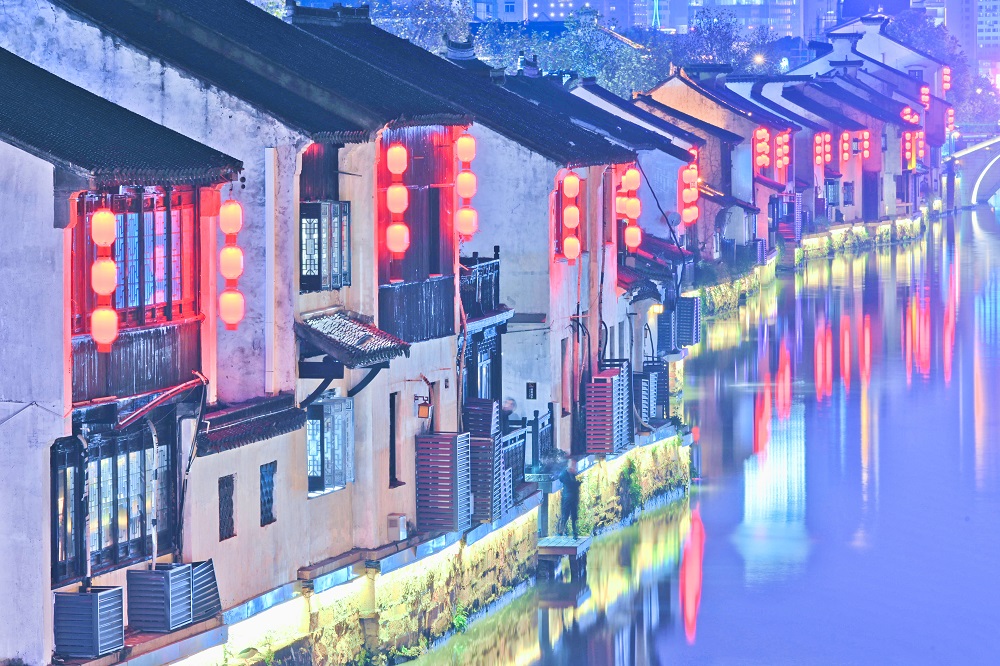 Boasting a history of more than 2,500 years and a crucial role in the history of the Grand Canal, the Wuxi Ancient Canal in Jiangsu province exudes the fascinating charms of the southern Yangtze River Delta. It is even more bewitching at nightfall when colorful lights adorn the traditional dwellings on both its sides. Let’s have a look!