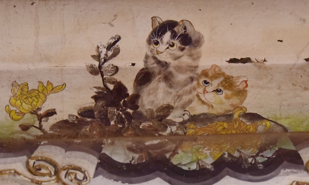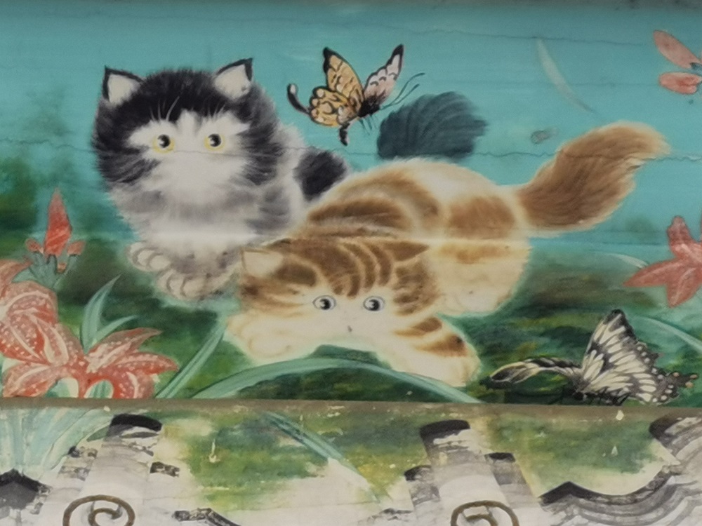 The corridor decorative paintings of the Summer Palace in Beijing bring to life of a variety of subjects including landscapes, flowers, figures and animals – such as these lovely cats.
