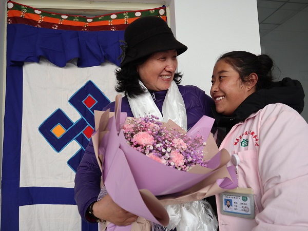 Yan Li'e, head nurse in the west zone of China-Japan Friendship Hospital in Beijing, has been an Aid-Tibet supporter for two years in the Barkor Community Health Service Center of Lhasa, Tibet, together with 15 other Aid-Tibet medical workers.