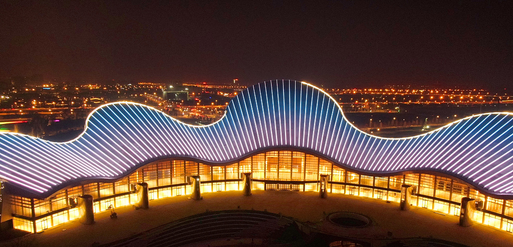 The stunning lighting of Nantong Grand Theatre in Jiangsu province [Photos/cfp.cn]