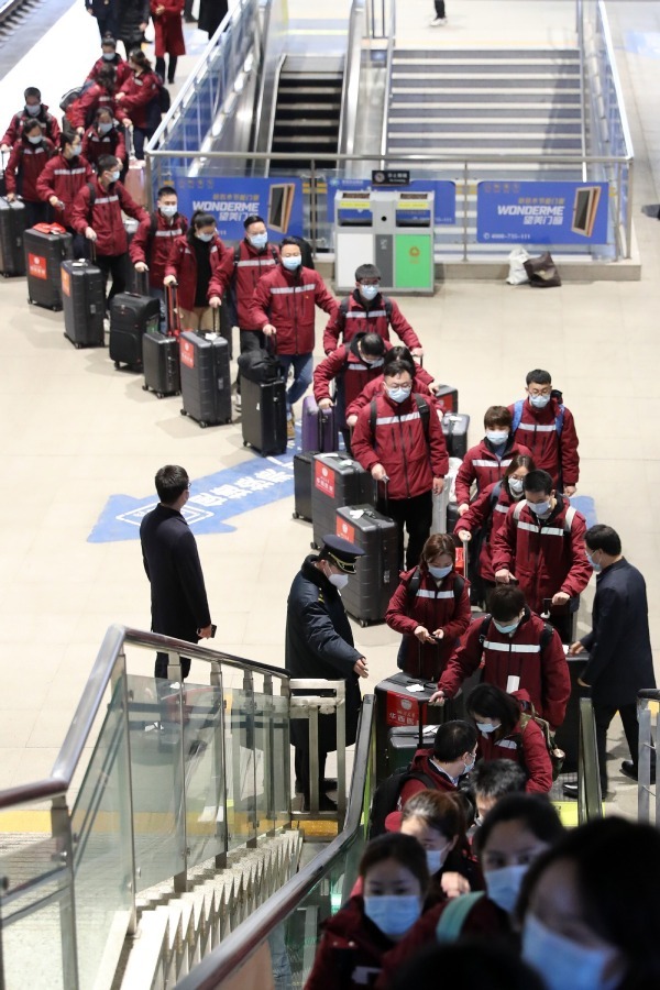 A medical team from West China Hospital of Sichuan University arrived in Shijiazhuang in North China's Hebei to support the city's fight against COVID-19, on Jan 18, 2021. [Photo by Wang Zhuangfei/chinadaily.com.cn]