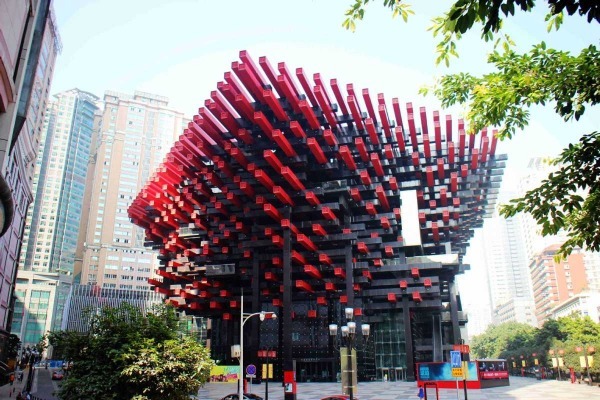 A building with chopstick-shaped beams in Chongqing on Jan 4, 2021. [Photo/IC]
