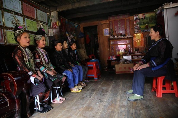 During winter and summer vacations, she participates in cultural activities and helps guide the chorus of Dong songs. Many of the villagers are her students.