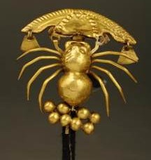 A Sican gold ornament in the form of a spider with egg sacs (750-1375). [Photo provided to chinadaily.com.cn]