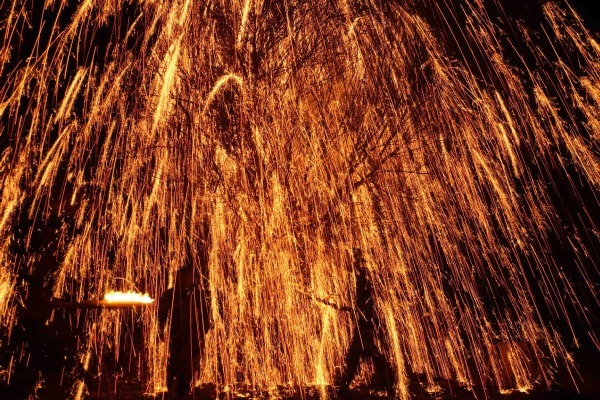 Molten iron spray illuminates Jining