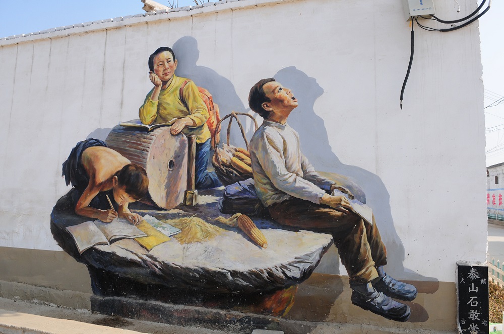 What would you do to recall your golden childhood memories? People in Dong’e county, Shandong province, especially the younger generation born in the 1980s and 1990s, can recollect them by appreciating the county’s 3D wall paintings!