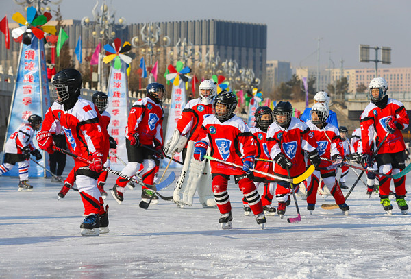 Ice hockey players are photographed at the start of the ice and snow sports season in Hohhot, Dec 19. Ice and snow sports have been well-received in Hohhot city. In recent years, athletes from Hohhot have achieved excellent results in winter events at home and abroad, further inspiring citizens to participate in ice and snow sports. [Photo/cfp.cn]