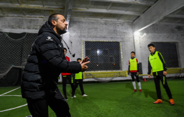 Martins manages to use his not-so-fluent Chinese with a tinge of the Ordos dialect to help guide these children on the pitch. He teaches them how to start dribbling the ball and demonstrates the proper moves. The children repeat it over and over again until Martins is satisfied.