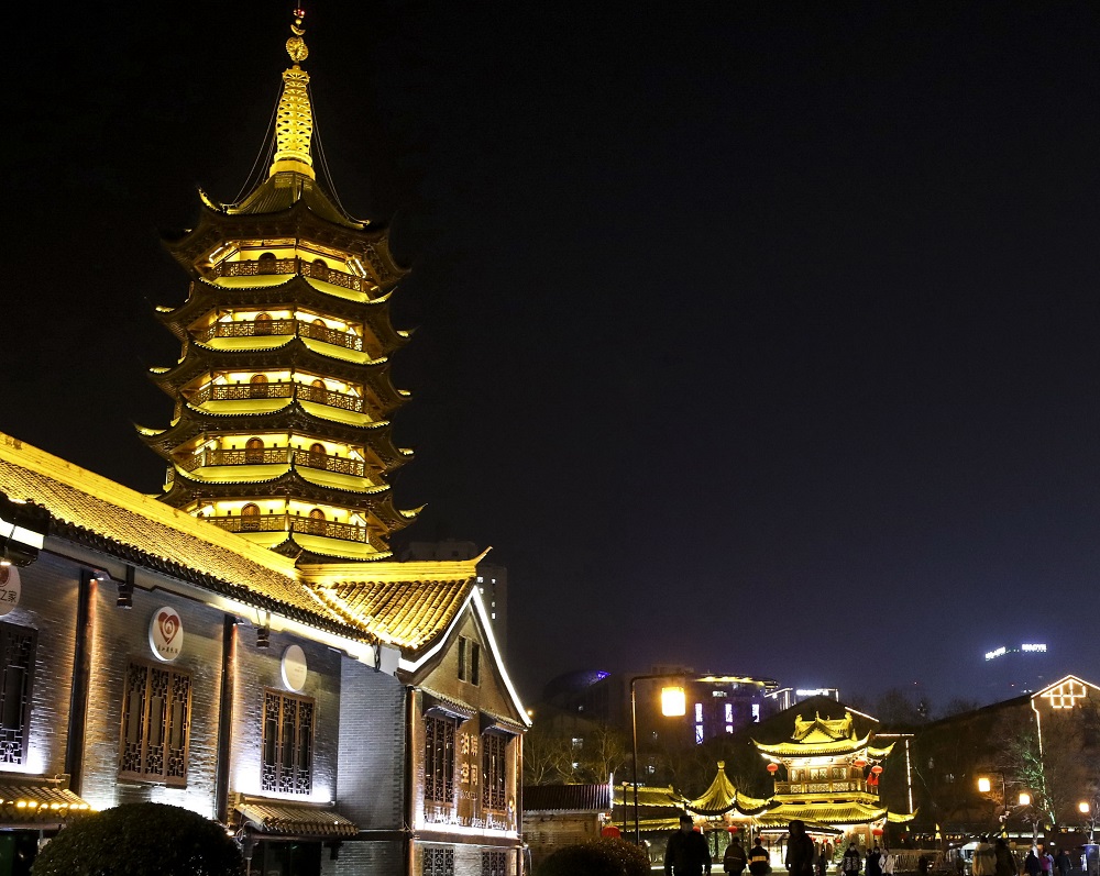 Take a night stroll in Huaian, Jiangsu province, for views of the South Yangtze River Delta under dazzling lights! Let’s start with the pavilions, boats, towers and bridges!
