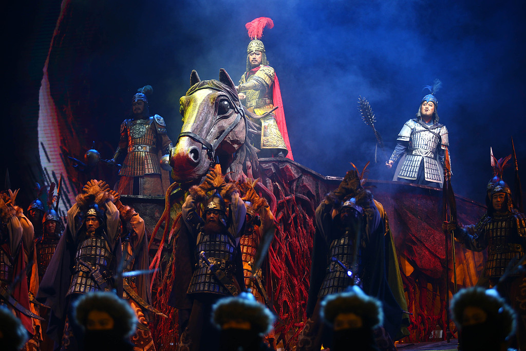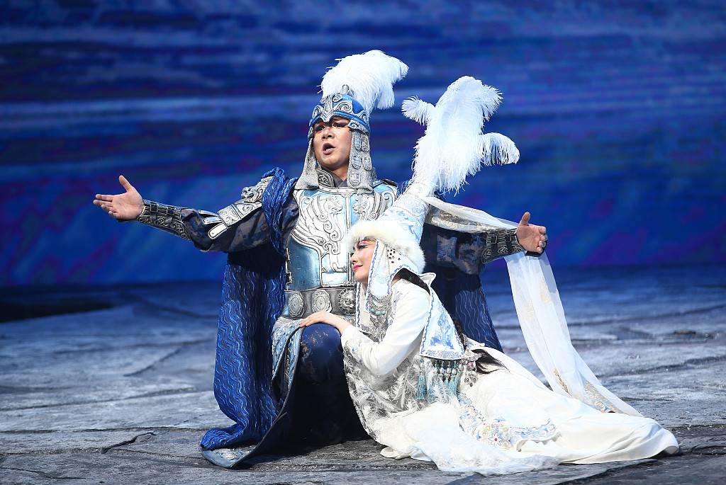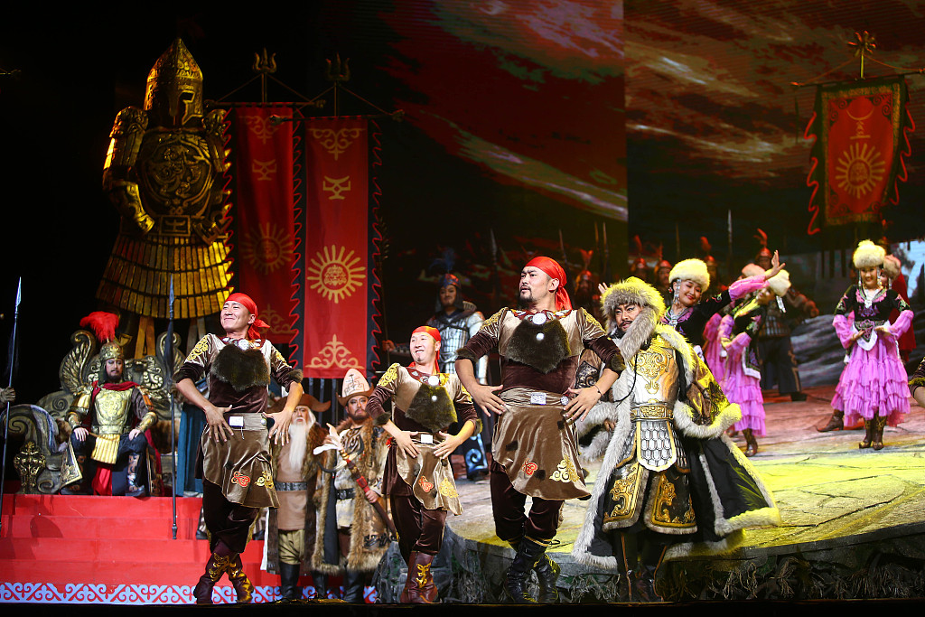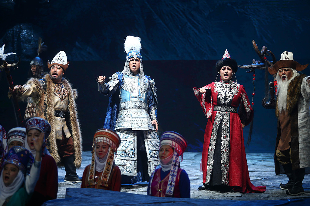 Based on this glorious epic, the eponymous opera produced by China National Opera House focuses on the self-development of Semetei, Manas's son, and how he seeks revenge for his father, who was murdered by enemies after unifying the Kirgiz tribes. Raised by his mother, Semetei succeeds to the throne and marries the fairy Aytralek, which irritates his first wife, Chaqikai. She conspires with usurpers and murders Semetei after he successfully avenges his father's death. At the people's call, the spirit of Manas is revealed, holding grease in one hand and a blood clot in the other, symbolizing the peace, justice and invincibility of the Kirgiz people. The Manas family's legend continues, and their epic story has been transmitted from generation to generation.