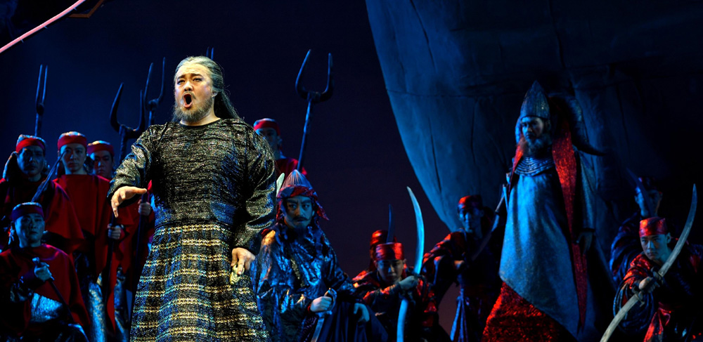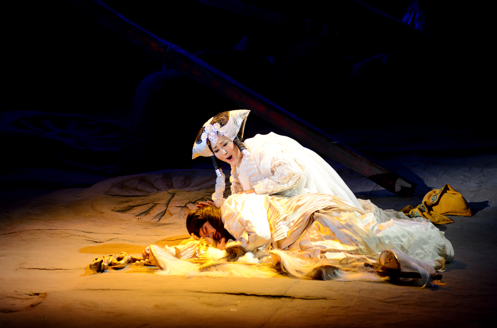 Firstly, when Su is held captive in the freezing cellar during the second act, he sings the aria Thirst is like a Cutting Knife, about the fear of death and the desire to survive. It requires highly technical singing skills to perform the consecutive triplets of F, G and A notes, highlighting the quality of the tenors. The astonishing artistic and emotional tensions immediately bring the hero, who is in critical condition, back to life.