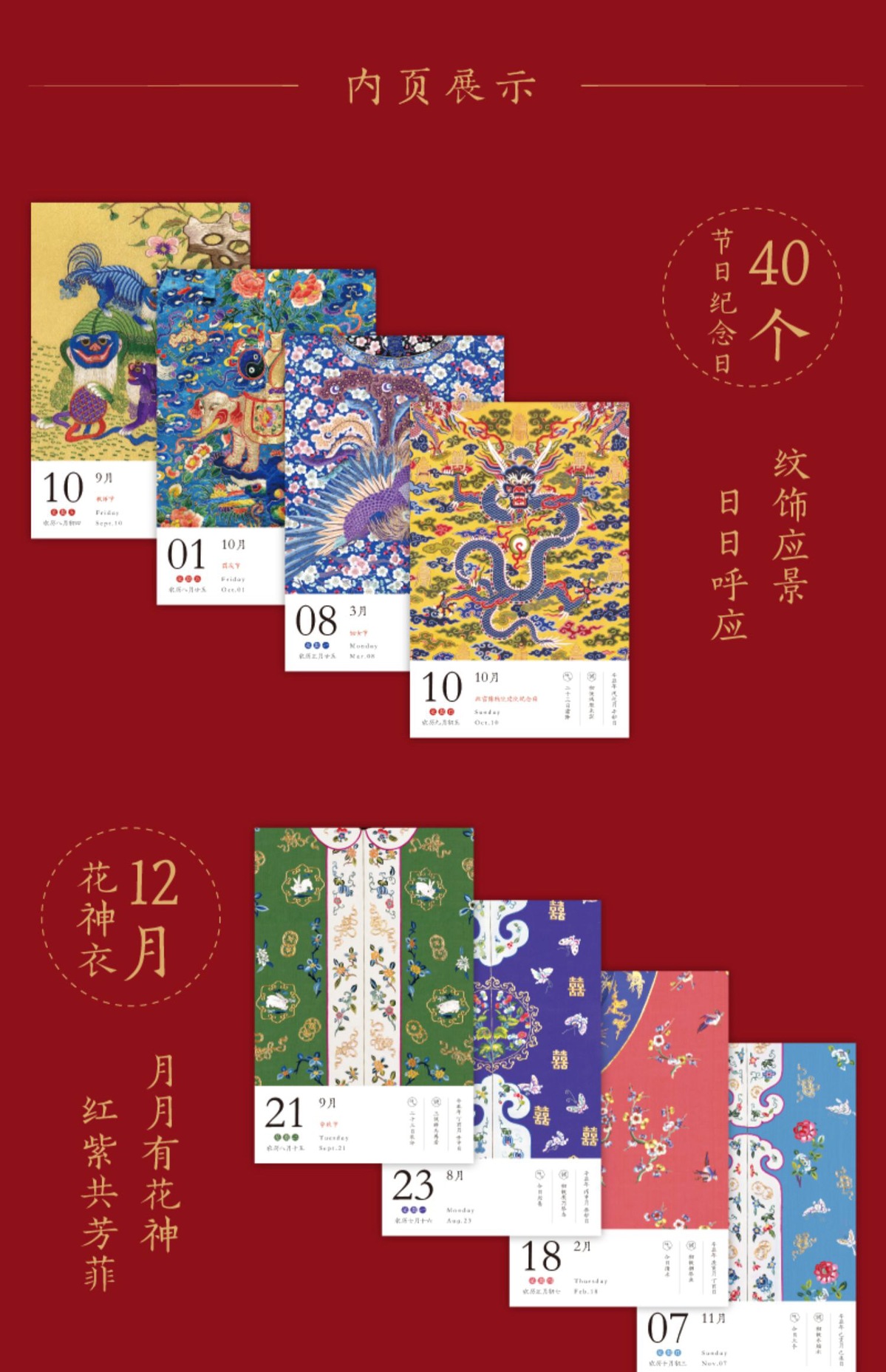 It was designed with more than 300 embroidery motifs from the museum’s permanent collection for each of its pages, and presents both the connotations hidden in the motifs and traditional Chinese embroidery art.