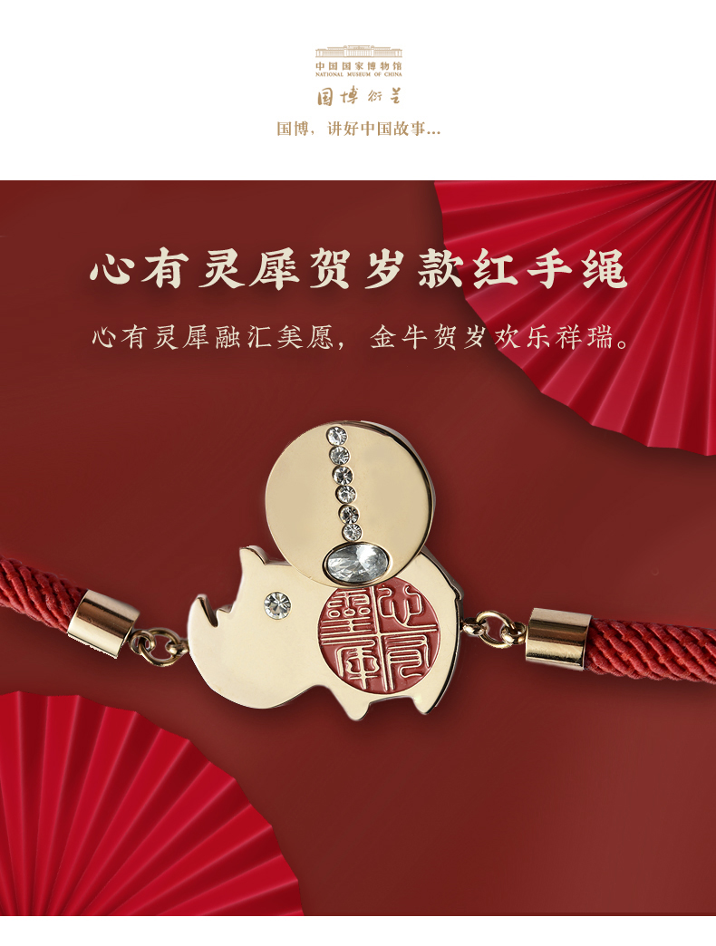 As the Lunar New Year (the Year of the Ox) is coming, the National Museum of China in Beijing has launched many new creative and cultural products to wish people a happy new year. A red bracelet with a rhino motif is one of the most popular. It was designed based on an item in the museum’s collection, a bronze rhino, and expresses the hope that lovers and couples will maintain perfect mutual understanding. What a wonderful gift for your girlfriend or boyfriend!