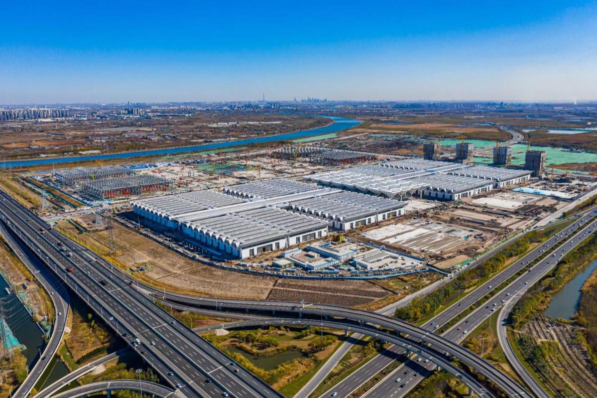 Construction of the first phase of the National Convention and Exhibition Center (Tianjin) in the city's Jinnan district, will enter service in June. [Photo provided to chinadaily.com.cn]