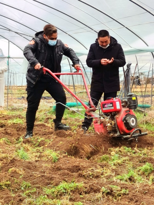 A student tries out a motorized tiller in Dayan, Ningbo, Zhejiang province on Wednesday. [Photo by Shi Jingjing/Provided to chinadaily.com.cn]
