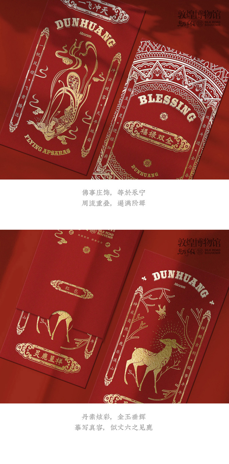 The Chinese New Year only has a week to go! Have you prepared some red envelopes to be filled with money for your relatives? The Dunhuang Museum has designed a set of red envelopes bearing auspicious motifs based on the theme of the Silk Road to help people express their blessings.