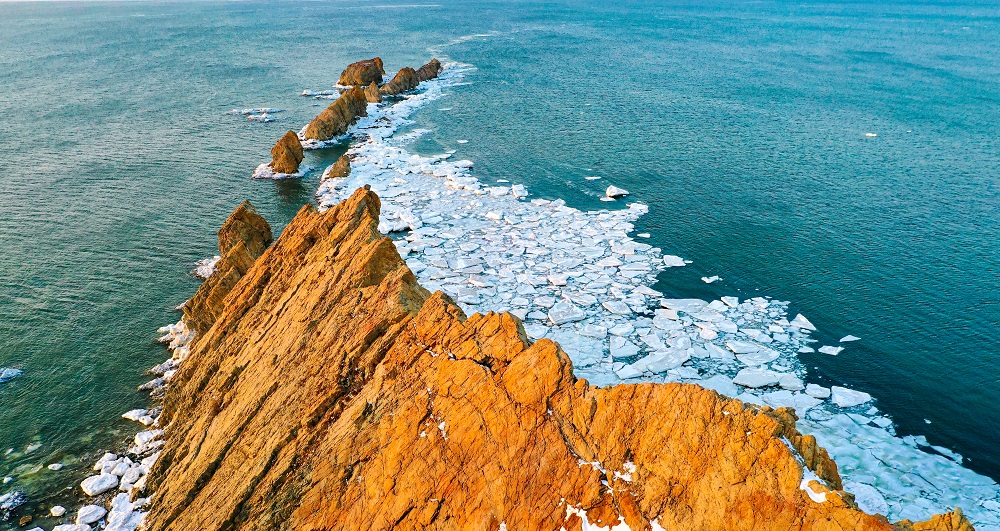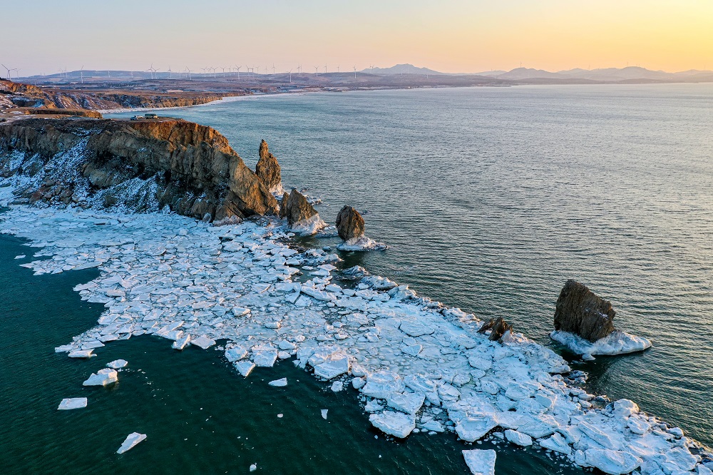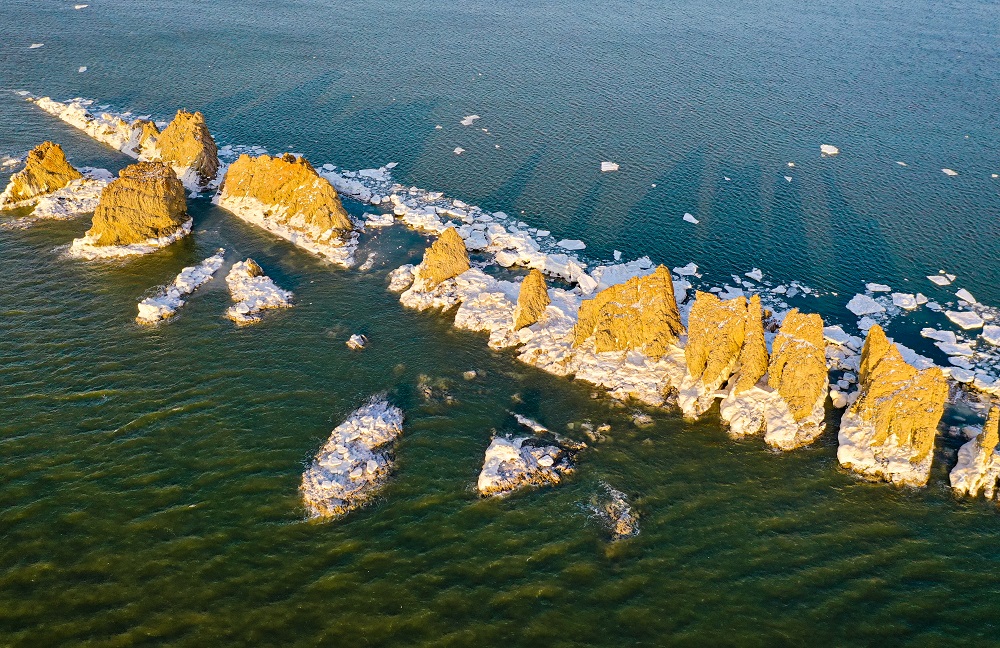Feast your eyes on the rows of seaside rocks in Dalian, Northeast China’s Liaoning province! Formed by marine abrasion, they are blanketed with ice and in sunlight resemble neatly arranged books. What a magnificent sight!