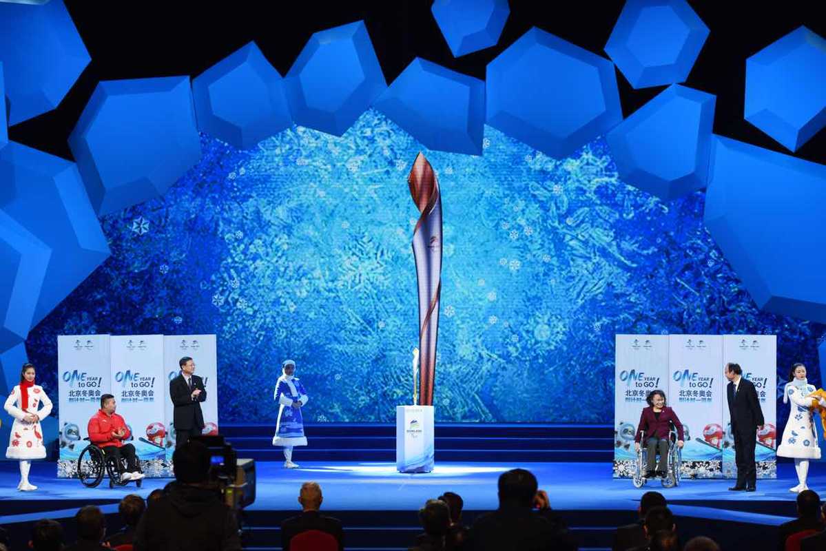 Sharing the same structure and patterns, the torch for the 2022 Paralympic Winter Games, which was also unveiled on Thursday, features a gold and silver color scheme. The bottom of the torch is engraved with Beijing 2022 Paralympic Winter Games in Braille.