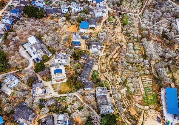 Plum trees in Fuzhou's Yongtai county are beginning to blossom, turning the area into a paradise of shimmering white flowers. [Photo/VCG]