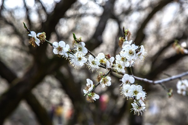 Plum trees in Fuzhou's Yongtai county are beginning to blossom, turning the area into a paradise of shimmering white flowers. [Photo/VCG]