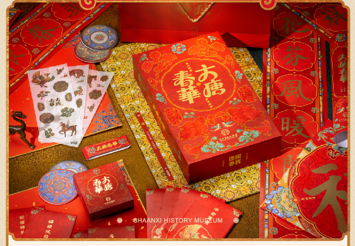 The Chinese Lunar New Year is approaching! Have you bought Spring Festival couplets and the Chinese character "fu" (which means blessings) to decorate your home? The Shaanxi History Museum recently launched a gift box that includes those items as well as red envelopes, lucky stickers, and coasters. They were designed with auspicious motifs inspired by the Tang Dynasty (618-907) cultural relics collected by the museum.