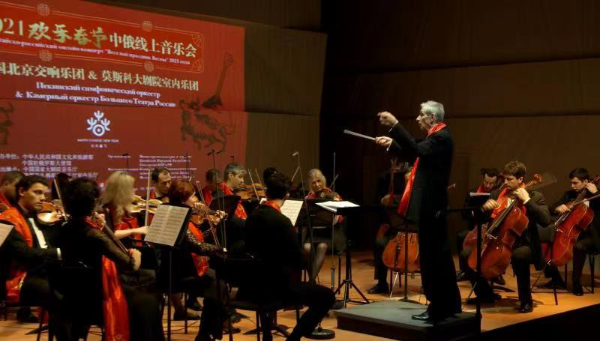 The 2021 China and Russia Happy Chinese New Year online concert will be livestreamed on Feb 10, featuring the Bolshoi Theatre Chamber Orchestra and Beijing Symphony Orchestra, performing from the Chamber Hall of Zaryadye Concert Hall and the concert hall of the National Centre for the Performing Arts.