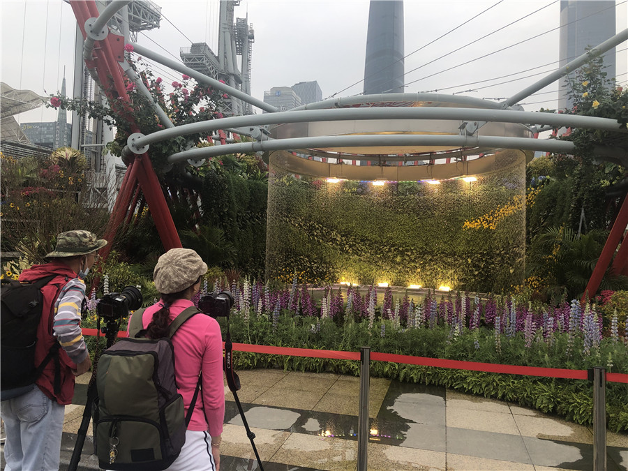 An couple take photos while visiting Guangzhou Garden Expo on Tuesday. [Photo by Zheng Caixiong/chinadaily.com.cn]