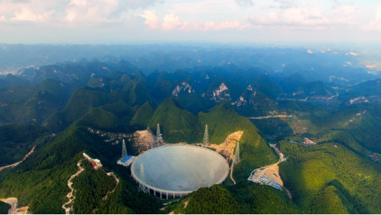 The aerial photo shows China's Five-hundred-meter Aperture Spherical Radio Telescope (FAST) in Southwest China's Guizhou province.[Photo provided to chinadaily.com.cn]