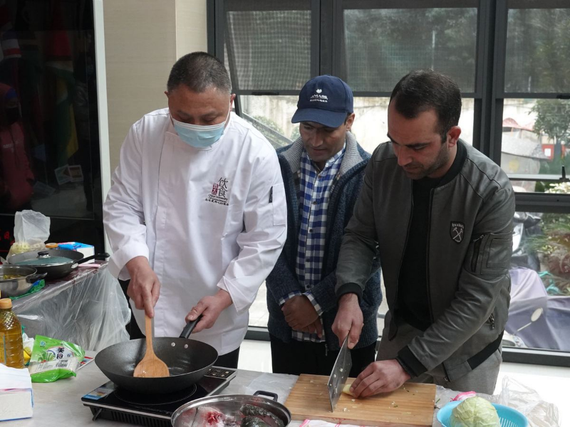Organized by China University of Geosciences, students from the university could prepare Chinese dishes, including boiled fish with pickled cabbage and chili and spicy potato with vinegar. They also learned a bit about calligraphy through hands-on practice.