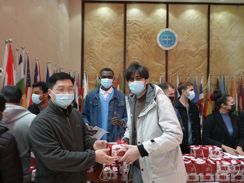 China University of Geosciences gives out holiday candy gift bags on Friday, in Wuhan, Hubei province. [Photo provided to chinadaily.com.cn]