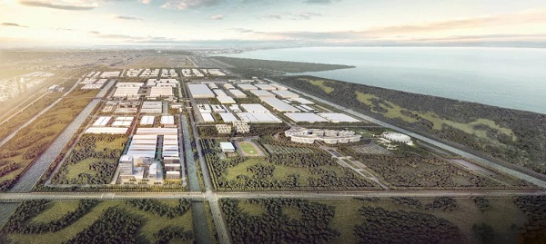 South of the Pudong International Airport, construction on a 7.86-square-kilometer aircraft industrial park is progressing smoothly.