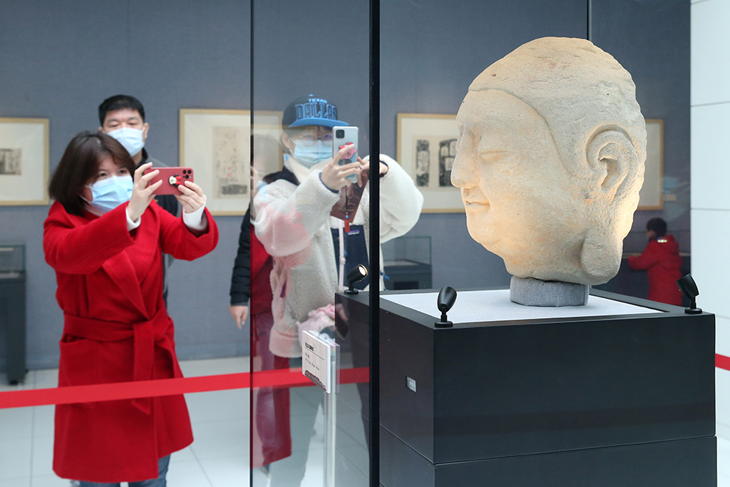 The Lu Xun Museum in Beijing is displaying a lost Buddha head statue returned from Japan. The statue was originally placed on the northern wall in the No 8 Tianlongshan Grottoes in North China's Shanxi province. It has been lost overseas for nearly a century and was the 100th cultural relic repatriated in 2020.