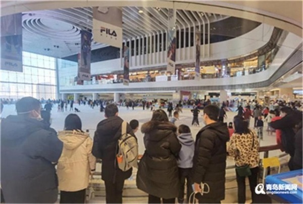 People ice skate at a shopping mall in Qingdao during the Spring Festival holiday. [Photo/qingdaonews.com]