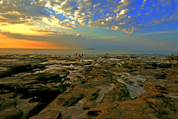 Located on eastern Weizhou Island, Five-Color Beach was named after its colorful marine erosion platform under the sunshine during ebb tides. When the tide ebbs, a large number of sea erosion platforms are exposed and polished by the seawater, and resemble a magnificent impressionistic scroll. It’s also one of the best places to watch the sunrise.